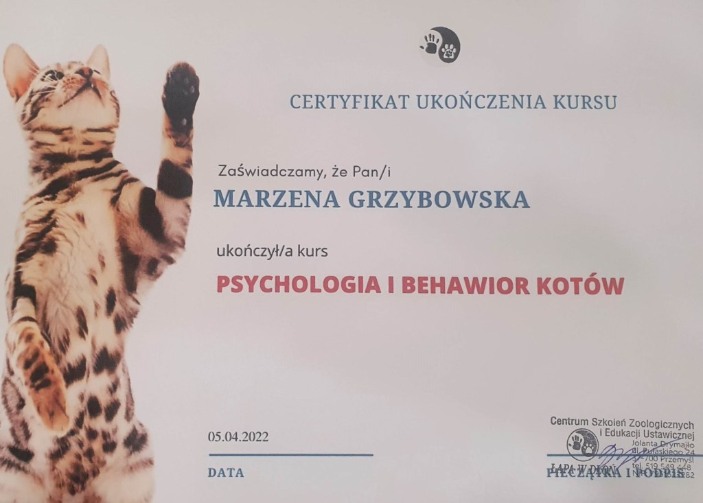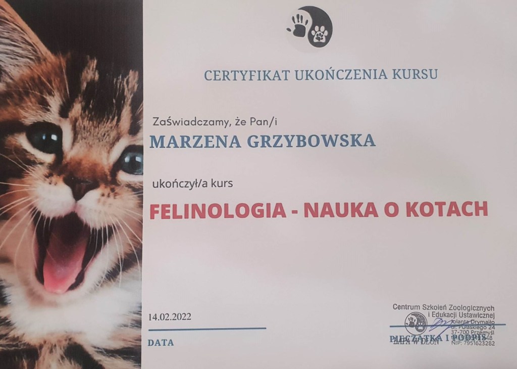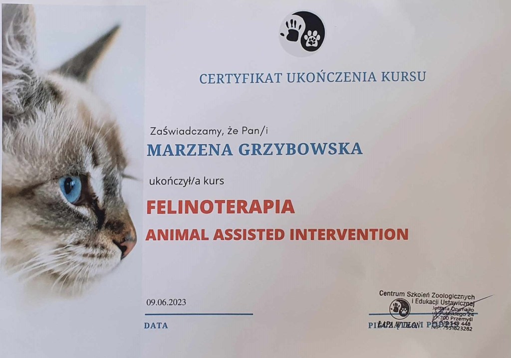 Człowiek uczy się przez całe swoje życie i my również doskonalimy swoją wiedzę i umiejętności, by sprawować jak najlepszą opiekę nad naszymi podopiecznymi. To dla nich ukończyliśmy kilka kursów i obiecujemy,
