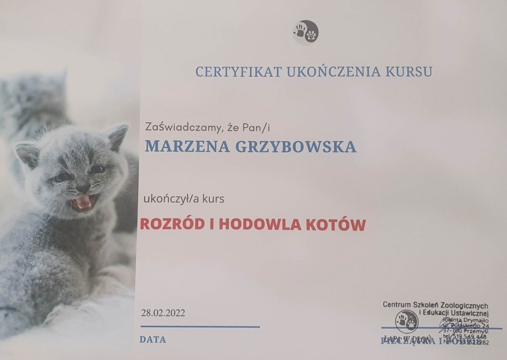 Nieśmiało nadmieniamy, że czerpiemy wiedzę od najlepszych hodowców rasy Maine Coon w kraju i poza granicami. Bardzo serdecznie dziękujemy za wszystkie cenne rady i wskazówki niezbędne dla realizacji naszego planu hodowlanego. Gdzie nadrzędnym jego celem jest powołanie do życia kociąt – godnych przedstawicieli rasy a jednocześnie zdrowych i socjalizowanych z ludźmi i innymi zwierzętami domowymi. Życzylibyśmy sobie i marzymy, by nasze kocie dzieci cieszyły nowe rodziny przez wiele długich lat.